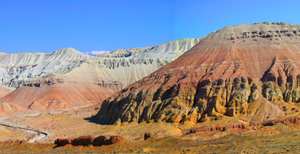 Заключительным аккордом путешествия являются горы Катутay и Актау. Когда-то здсь извергались вулканы, и остатки лавовых потоков, обработанные солнцем, морозом, дождями и ветрами, являют собой удивительные скалы-изваяния в дырах и извилинах и кажутся последствиями игр расшалившихся детей-великанов. Горы Актау (Белые горы) - это музей далекого прошлого Земли. 15 миллионов лет назад здесь было гигантское озеро-море, теперь – слои осадочных пород причудливых форм и цветов: красного, желтого, голубого и белого. Огромные конические горы напоминают египетские пирамиды. Время от времени здесь находят ископаемые останки динозавров и древних млекопитающих.