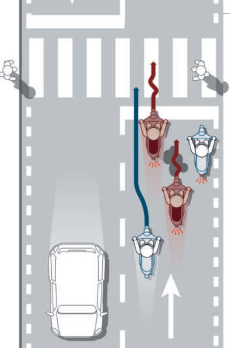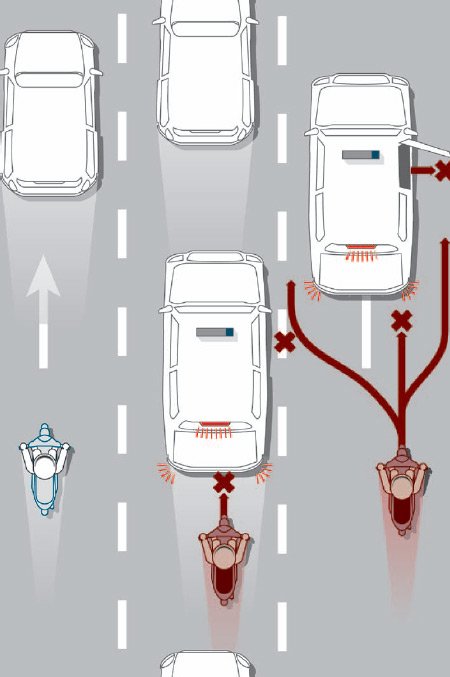Передвижение на мотоцикле имеет много преимуществ. Одно из самых очевидных – возможность выбирать маршрут, т.к. улицы и шоссе забиты наполовину машинами и грузовиками, чья маневренность ограничена. Один из самых ярких примеров – это проезд между машинами, стоящими на светофоре. Или если возникла аварийная ситуация (по своей вине или из-за невнимательности других водителей), и приходится совершить маневр, проезжая между двух движущихся автомобилей (что совершенно неправильно и опасно). Хотя будь мы за рулем другого транспортного средства, аварии не избежать.