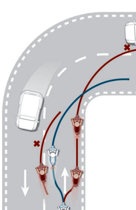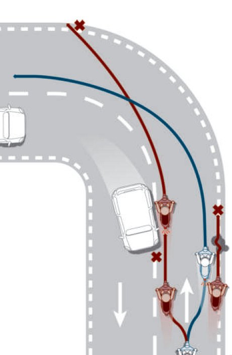 – начинайте маневр до поворота: помимо выбора наилучшей траектории, это позволит улучшить обзор, чтобы знать, что вас ожидает за поворотом;
